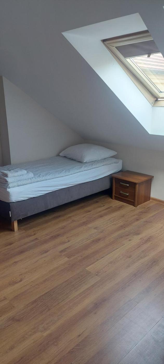 Pokój Czteroosobowy. The quadruple room features a tea and coffee maker, a wardrobe, as well as a private bathroom boasting a shower. This quadruple room has parquet floors, heating, a flat-screen TV and ancourtyard view. The unit has 4 beds. Pokój Czteroosobowy - 4 osobowy. Powierzchnia pokoju ok.: 15 mkw. ;