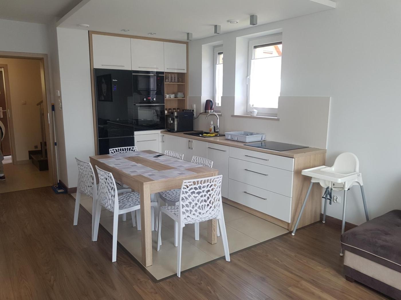 Apartament typu Deluxe. This apartment comprises 1 living room, 1 separate bedroom and 1 bathroom with a walk-in shower and a hairdryer. Guests will find a stovetop, a refrigerator, a dishwasher and kitchenware in the well-equipped kitchen. The apartment also provides guests with a barbecue. The apartment provides a coffee machine, a dining area, a wardrobe, a high chair for children, as well as a flat-screen TV. The unit offers 3 beds. Apartament - 6 osobowy. Powierzchnia pokoju ok.: 50 mkw. ;