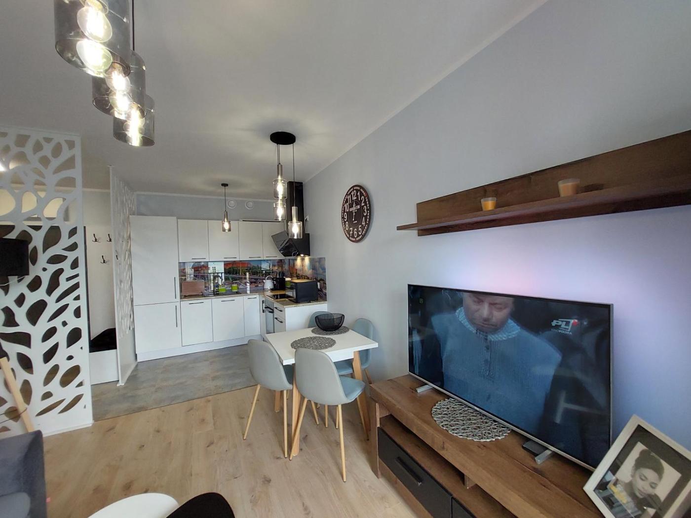 Apartament z 1 sypialnią. This apartment is comprised of 1 living room, 1 separate bedroom and 1 bathroom with a shower and a hairdryer. Meals can be prepared in the well-fitted kitchenette, which is fitted with a stovetop, a refrigerator, a dishwasher and kitchenware. This wheelchair accessible apartment features a washing machine, a seating area with a flat-screen TV and a roll-in shower. The unit offers 3 beds. Apartament - 4 osobowy. Powierzchnia pokoju ok.: 40 mkw.