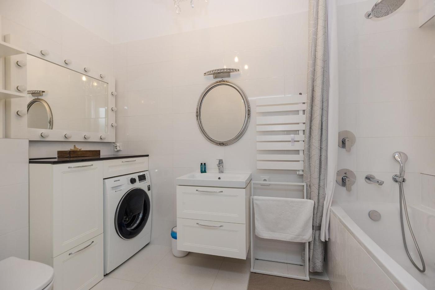 W apartamencie zapewniono kilka sypialni (2), kuchnię z lodówką i zmywarką, a także łazienkę (1) z wanną, bezpłatnym zestawem kosmetyków oraz pralką. W apartamencie zapewniono ręczniki i pościel.