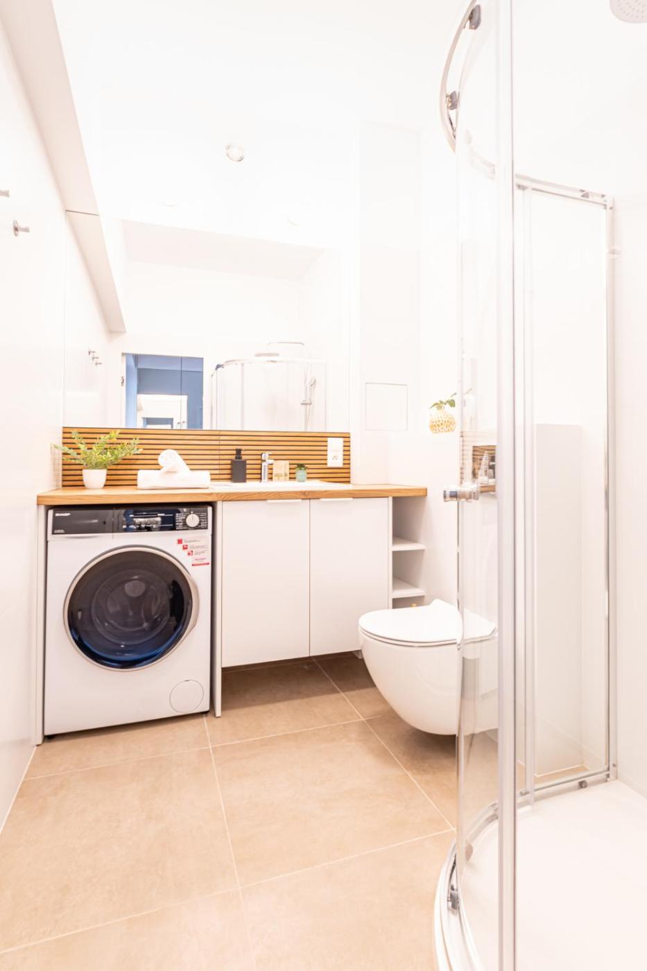 Studio. The studio features a private bathroom, a washing machine, a tea and coffee maker, as well as a seating area with a flat-screen TV. Guests can make meals in the kitchen that is equipped with a stovetop, a refrigerator, kitchenware and a microwave. The studio provides a TV, a dining area, a wardrobe, a sofa as well as city views. The unit offers 1 bed. Studio - 3 osobowy. Powierzchnia pokoju ok.: 29 mkw.